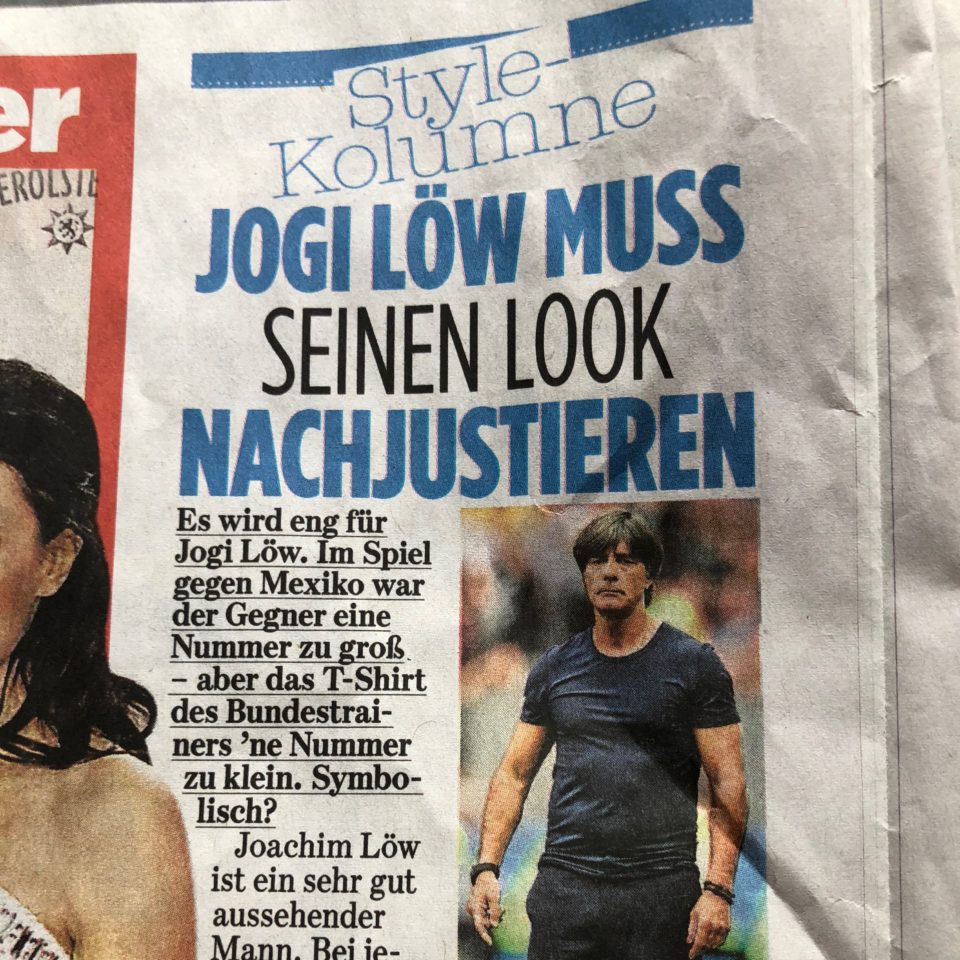 Jeden Samstag schreibt Annette Weber eine Kolumne in der BILD, hier Ihr Beitrag vom 23.Juni 2018. Es geht über das enge T-Shirt unseres Bundestrainers Joachim Löw / READ MORE /